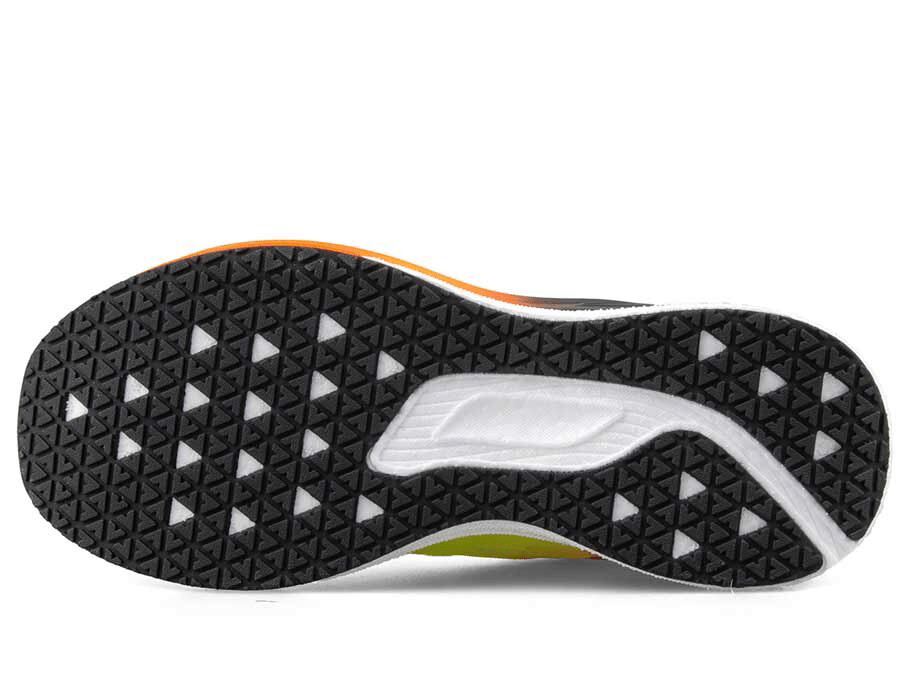 - زیره کفش: جنس زیره از نوع پلاستیک فشرده و مقاوم در برابر سایش است. طراحی آن به گونهای است که فشار را بهطور یکنواخت روی پا پخش میکند و در مسیرهای طولانی از خستگی زودرس جلوگیری میکند.